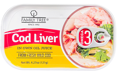 FAMILY TREE Cod Liver In Own Oil with Omega 3 121g/12pack