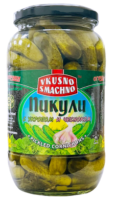 VKUSNO SMACHNO Marinated Cornichons with Garlic & Dill 946ml/12pack